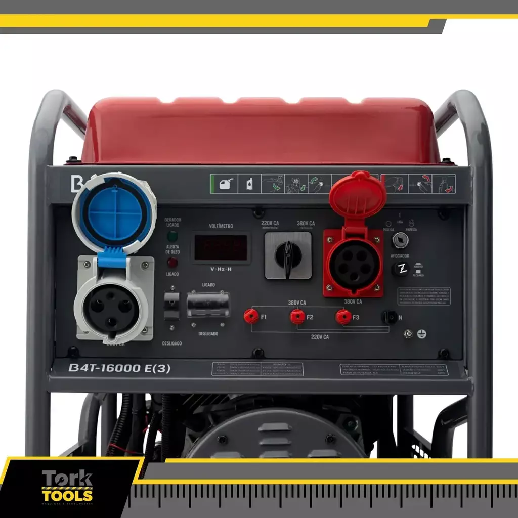 O Gerador a Gasolina B4T-16000 E3 foi desenvolvido para atender aplicações exigentes que demandam energia estável e confiável. Equipado com motor de 2 cilindros e potência máxima trifásica de 17,5 kVA, garante alto desempenho em obras, agronegócio, indústrias e suporte em áreas remotas.